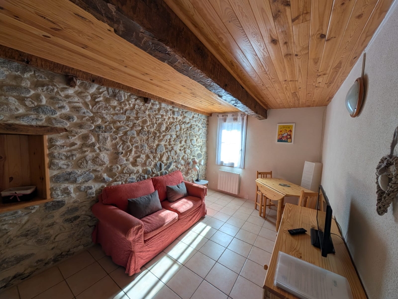 Equipements : frigo/congélateur, micro-ondes, four et plaque cuisson induction, lave linge privé dans buanderie commune, canapé lit (clic-clac 140), TV, Chauffage électrique, vaisselle, grille pain, bouilloire, cafetière électrique filtres, autocuiseur, mixeur, aspirateur, ustensiles de ménage, étendoir, jeu de société, cartes à jouer, livres, volets, rideaux.